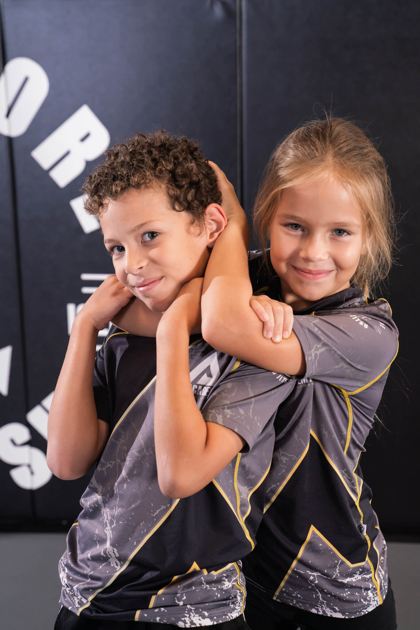 Kids Jiu-Jitsu" refers to the Brazilian Jiu-Jitsu (BJJ) practice specifically designed for children. It is a martial art and combat sport focusing on ground fighting and submission. Kids Jiu-Jitsu emphasizes discipline, respect, and physical fitness while teaching children self-defense techniques in a controlled and supportive environment. The training typically includes grappling, positional drills, and technique instruction, helping children develop confidence, coordination, and problem-solving skills. It promotes a healthy lifestyle and instills important values that extend beyond the mat, contributing to the child's overall well-being.
